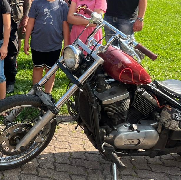 Endlich kamen sie angeknattert! Die Überraschung war riesig, denn die Biker überreichten uns eine Spende von 700,00 Euro für unser Bauwagenprojekt. Obendrein durften alle Kinder, die mit ihren Füßen auf die Beifahrerpedale reichten, mit ner Harley eine Runde durch Stolberg mitfahren. Die „zu kurzen Kinder“😊wurden im schicken Caprio chauffiert. Die Kinder konnten gar nicht aufhören zu strahlen.