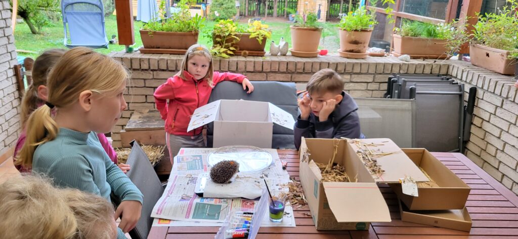 Es hat sich herumgesprochen, dass es im Kinderdorfhaus Strinum immer was Leckeres gibt. Im Herbst zählten wir 25 Igel und 7 Igel verbrachten ihren Winterschlaf kontrolliert in Außengehegen, da sie Ende Oktober noch ein zu geringes Gewicht hatten, um den Winterschlaf ohne Hilfe zu überleben. Diese sieben Igel mussten erst noch gepäppelt werden, bis sie etwas verspätet, aber dennoch den Winterschlaf antreten konnten.
