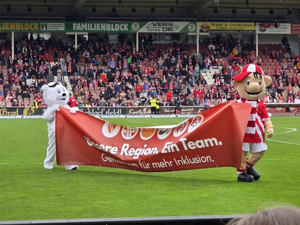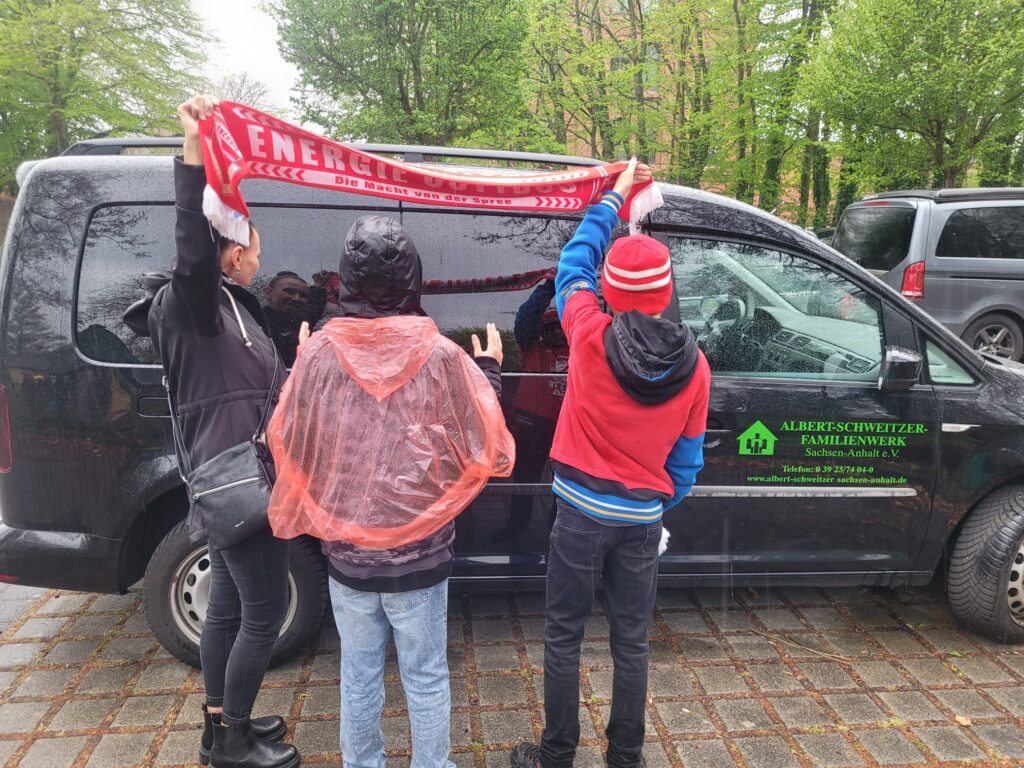 Mit einem der Jungen war im Vorfeld die Abmachung getroffen worden, bei anhaltend gutem Verhalten gemeinsam ein Spiel von Energie Cottbus zu besuchen. Da sich der Junge seit über einem Jahr sehr positiv entwickelt hat, konnte dieses Versprechen nun eingelöst werden.