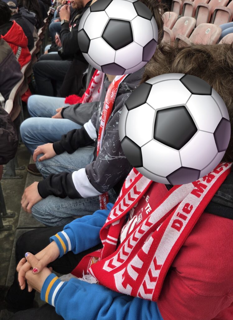 Ein weiteres Kind wurde ebenfalls mitgenommen, da es bisher noch nie die Möglichkeit hatte, ein Stadion zu besuchen.