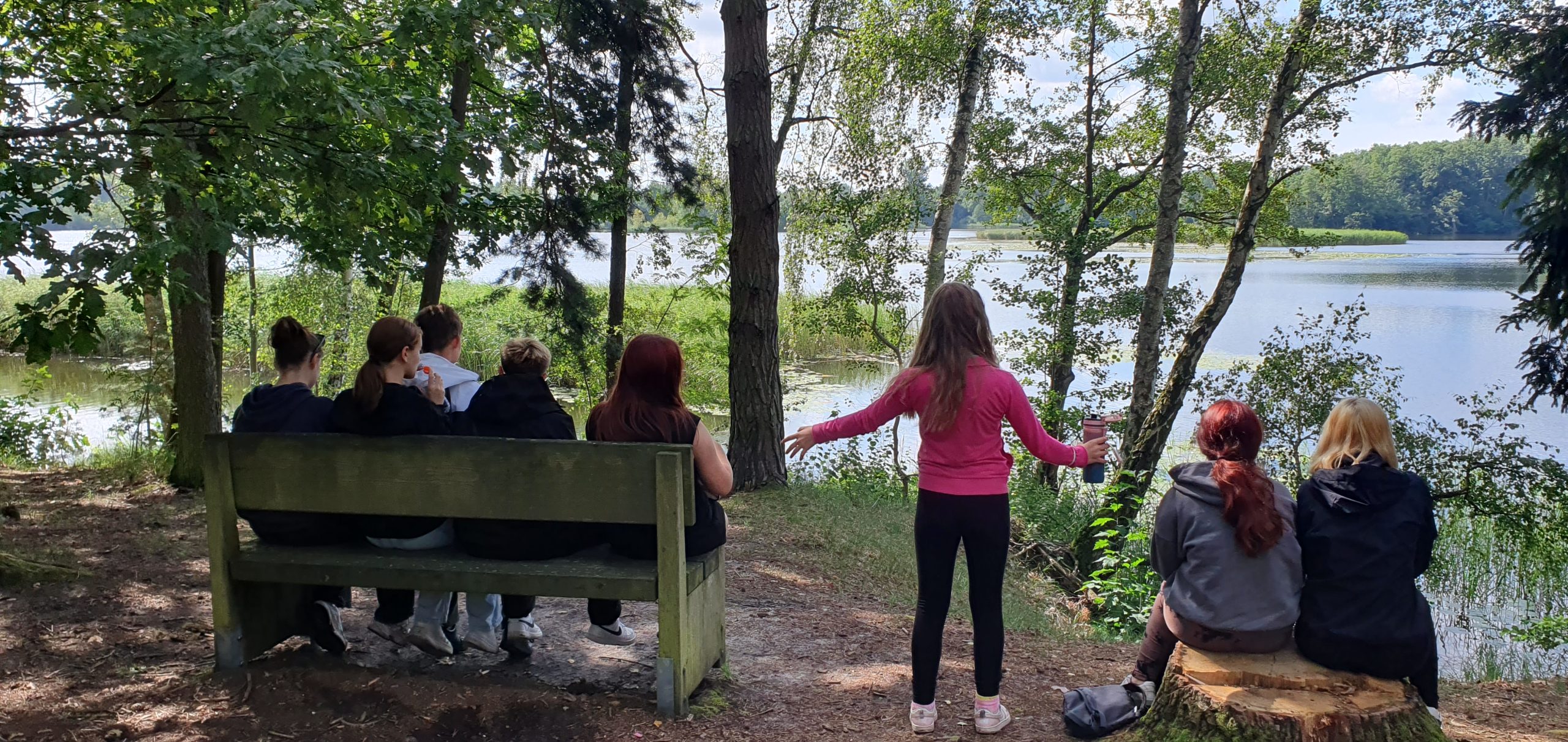 Es gab jeden Tag schöne Aktivitäten, wie Stand up paddeln, Tretbootfahren, Klettern, Bogenschießen und jeden Tag baden. Und natürlich durfte eine Wanderung um den Bruchsee (7,5 km) nicht fehlen. Geleitet wurde die Wanderung von unseren Mädchen. Sie haben uns anhand einer Beschreibung den Weg bereitet. Zur Feier des Tages gab es am Abend noch ein Lagerfeuer mit Stockbrot.