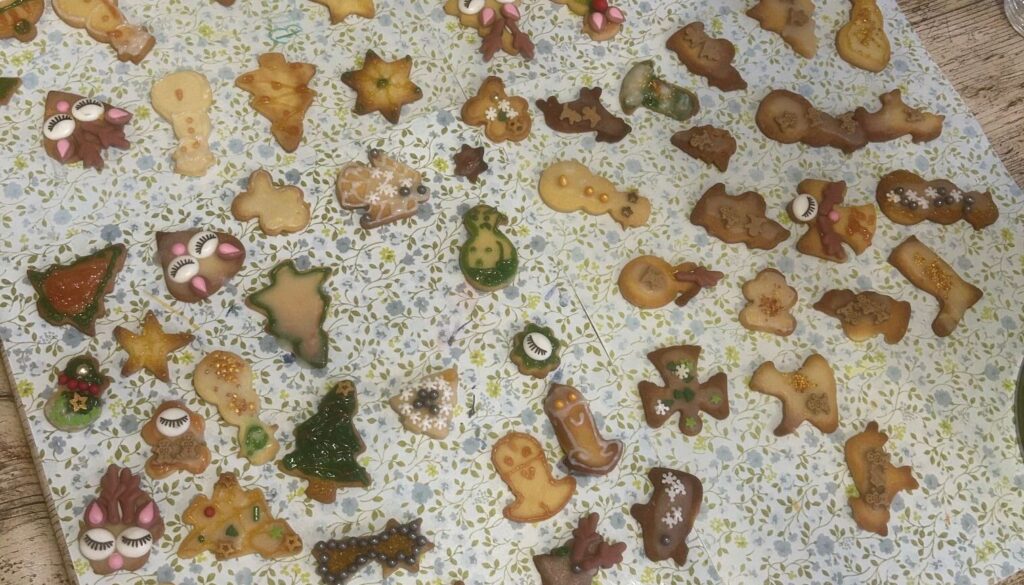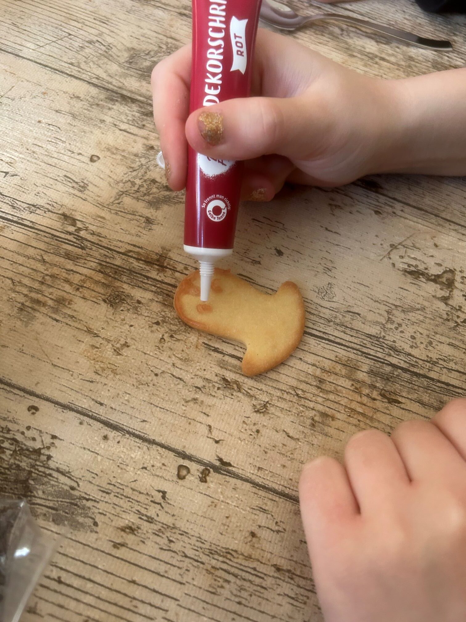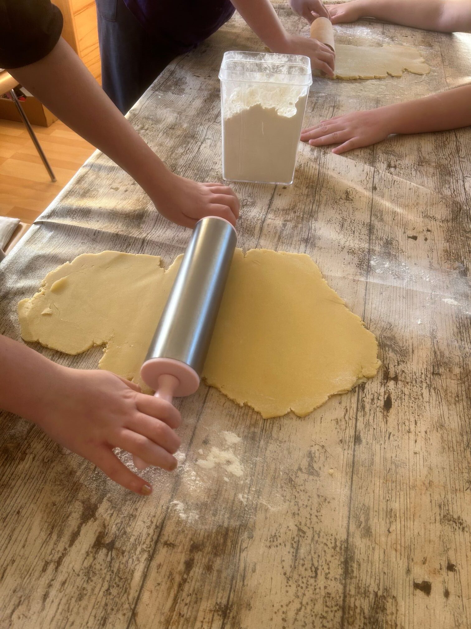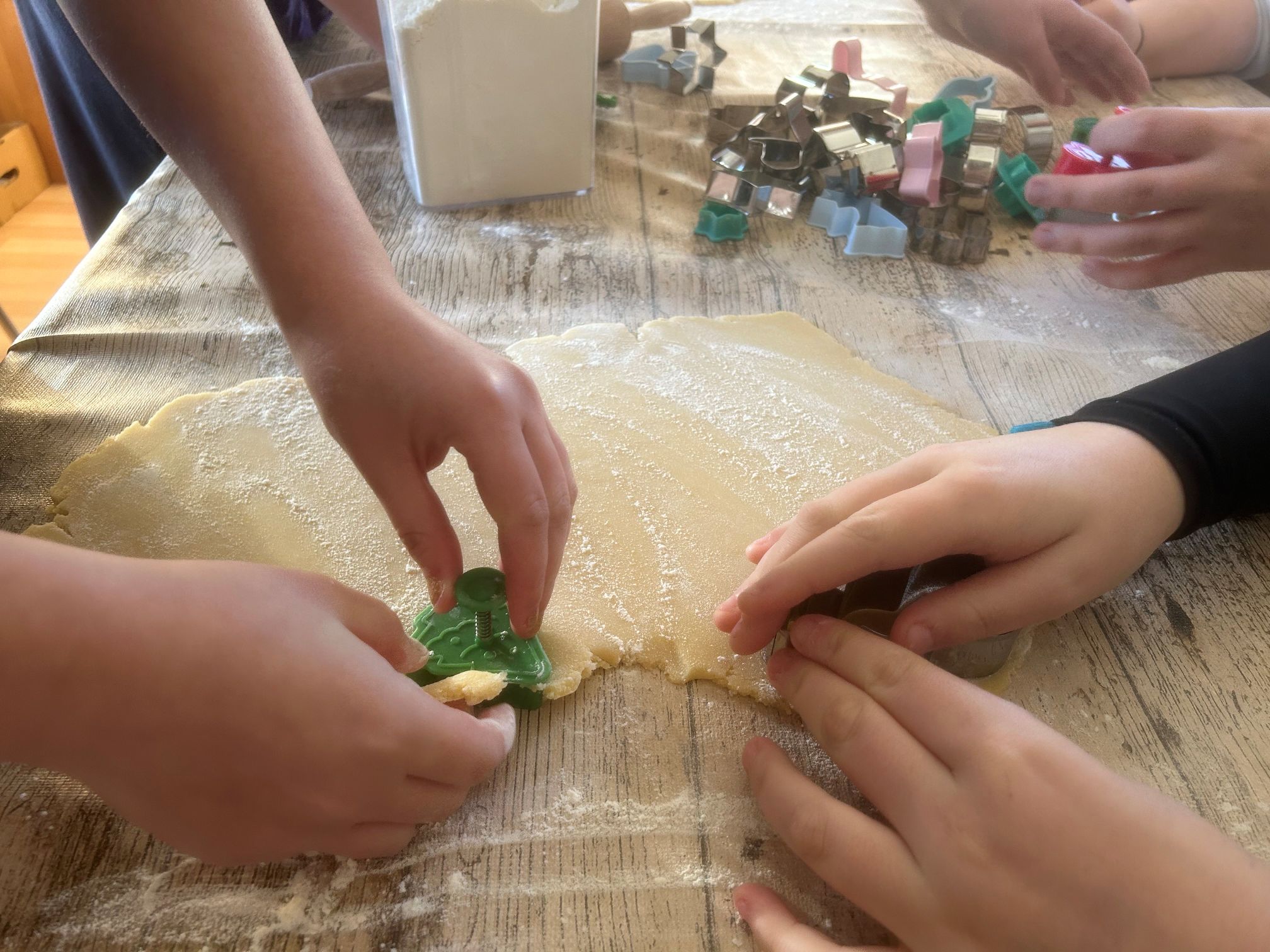 Wenn Erzieher und Kindern anpacken weiß man, das kann nur gut werden und der Plätzchenteig wurde mit Liebe geknetet, gerollt und nach dem Backen verziert. Gepaart mit Weihnachtsliedern und guter Laune haben wir uns die Wartezeit auf Weihnachten verkürzt.