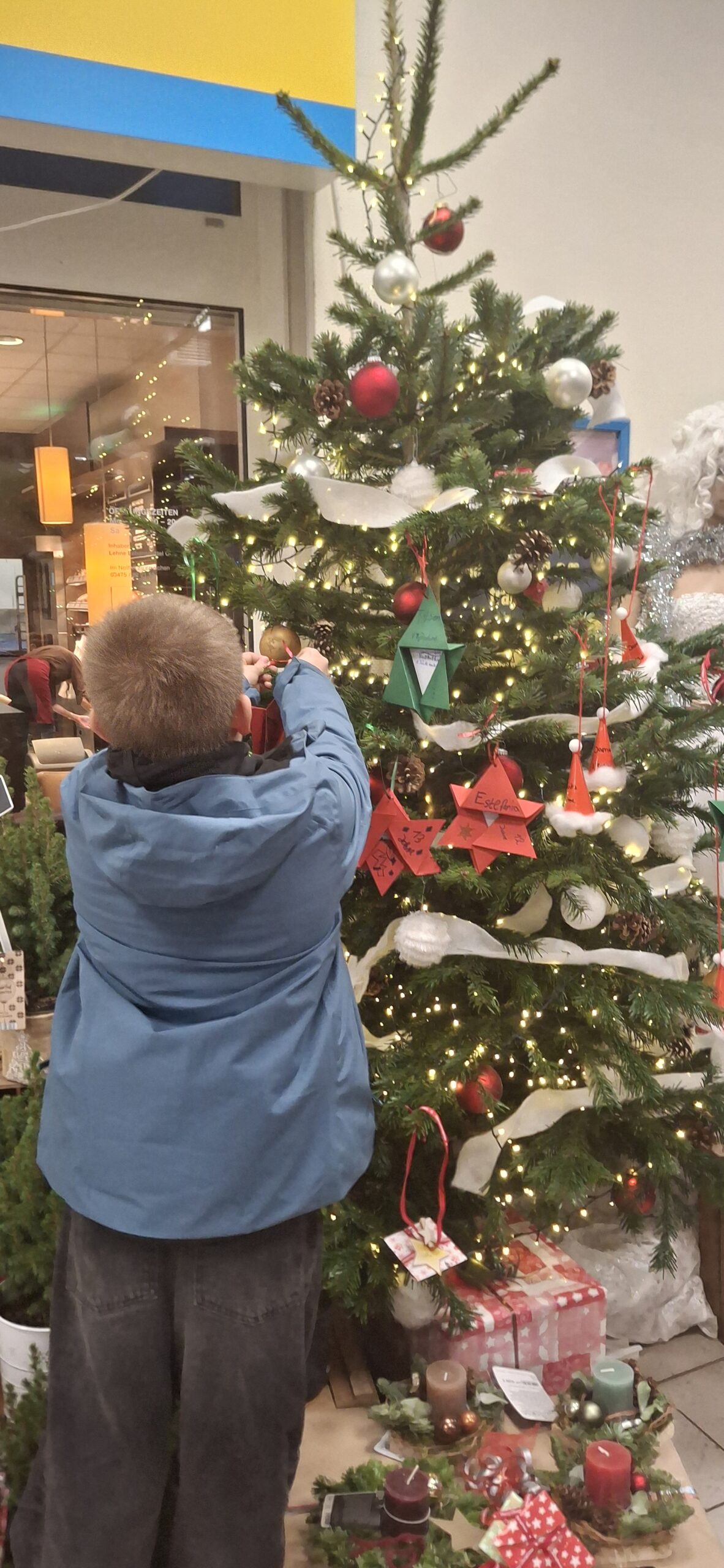 Anfang Dezember durften unsere Kinder aus dem Kinder- und Jugendhaus Stolberg ihre Herzenswünsche an den liebevoll geschmückten Weihnachtsbaum im EDEKA Roßla hängen.