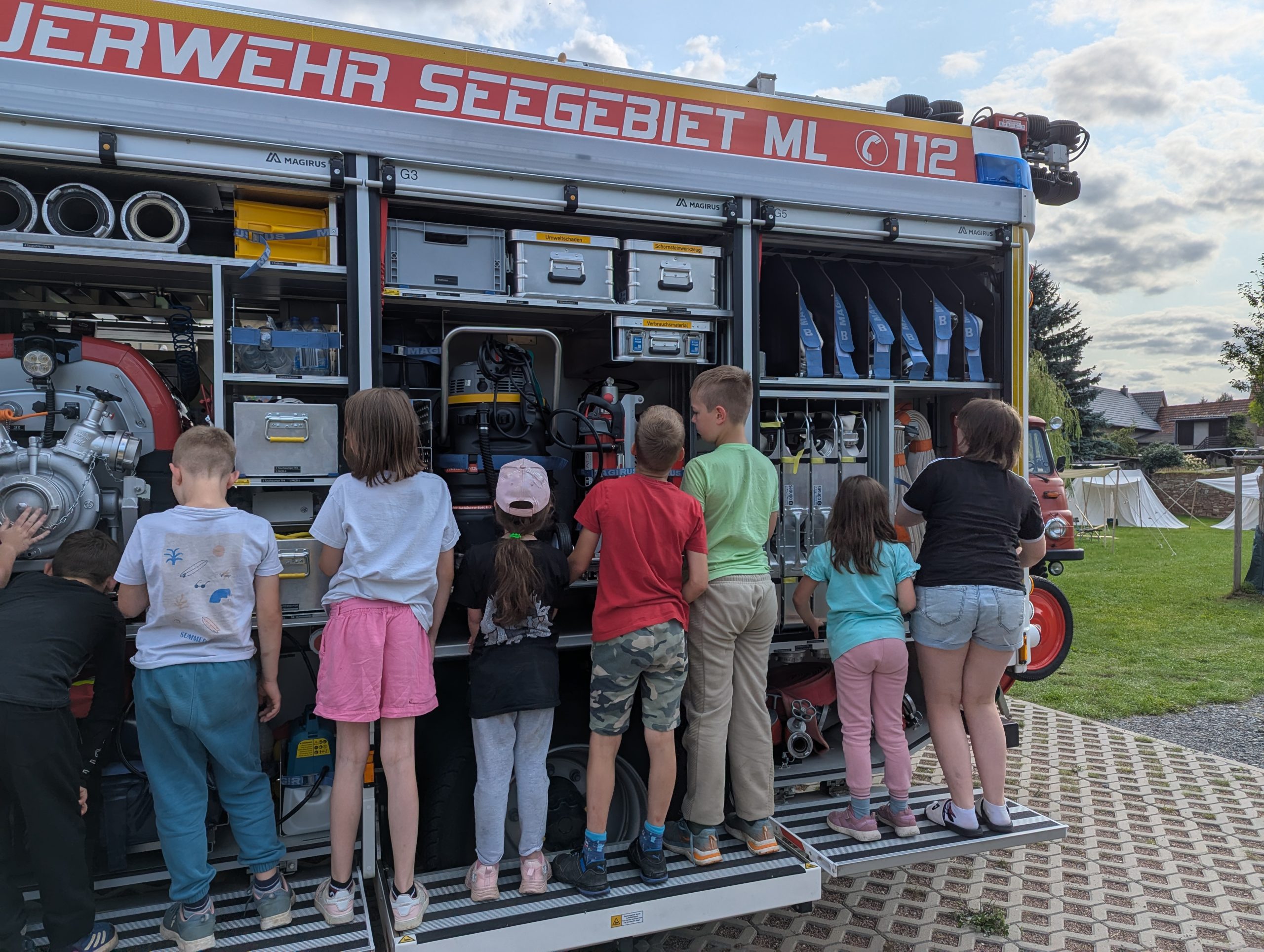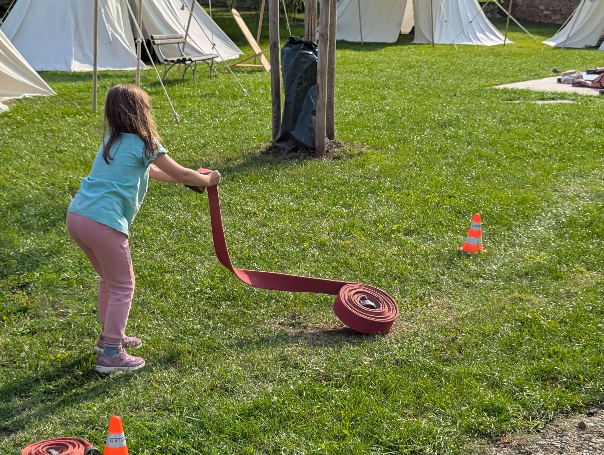 Auf Einladung des Rittervereins „Die Raben“ und dem Bürgermeister des Ortes Hornburg durften wir fünf Tage im dort aufgebauten Ritterlager verbringen. Alle, wirklich alle, waren um unser Wohl bemüht. Die Frauen aus dem Ort versorgten uns mit leckerem Kuchen. Die Mitglieder der Ortsfeuerwehr machten uns nicht nur mit Ihren Aufgaben und ihrer Technik vertraut. Sie waren täglich vor Ort und organisierten für uns die lustigsten Spiele. Beim ortsansässigen Reiterhof durften wir reiten und erfuhren dabei viel über die Tiere und die Arbeit auf dem Hof.