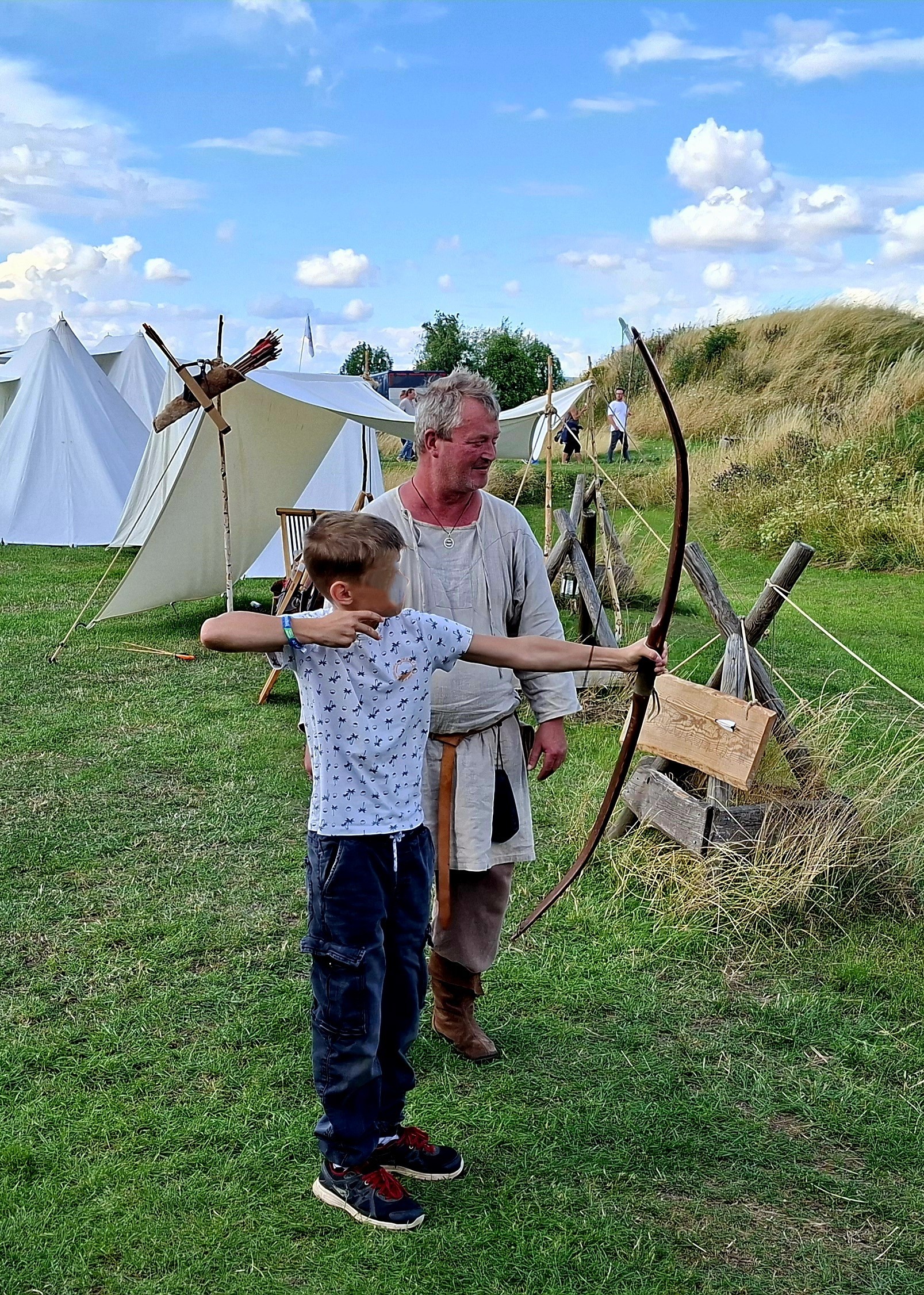Vom Ritterverein lernten wir, wie man ein Ritterlager bzw. ein Zelt aufbaut, übten uns im Bogenschießen und im Schwertkampf. Es wurde ein kostenfreier Eintritt mit Führung auf der Burg Querfurt organisiert, die selbstverständlich auch durch die Folterkammer führte.
